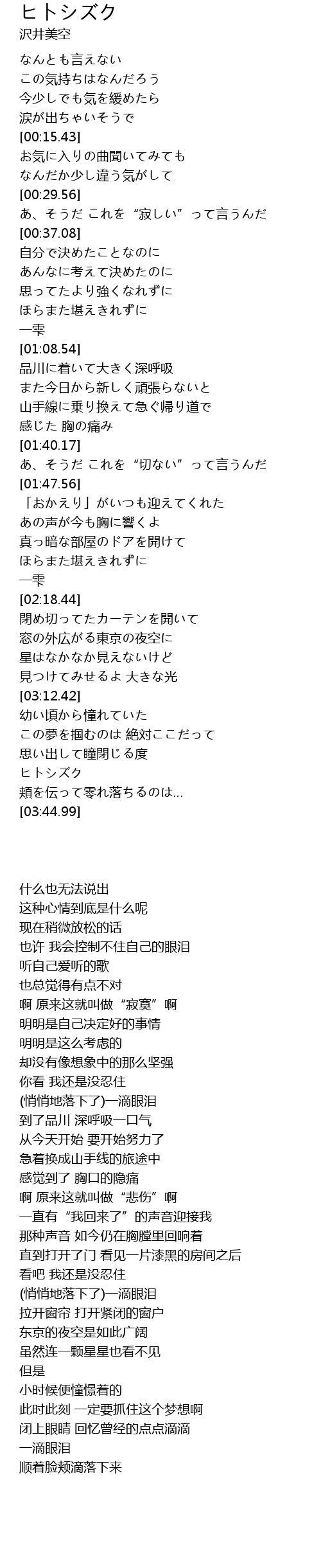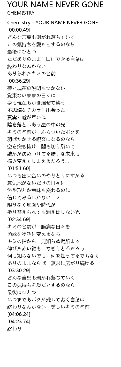 歌詞の意味はどういった気持ちが込められているのでしょう。 「chopstick」=箸 chopstickは、箸のことですが、二つで一つという意味もあるのかもしれません、 二つ揃ってこそ、使える箸に例えているのかもしれません。 Chopstickだから2人で1つって感じで分かれてるんかな、、 あとアルバムのUと その愛情は初めと同じようで「なんだか違う」のです。 「何時まで」「何処まで」と、今の複雑な気持ちのままついて行くことに悩んでいる様子も見えてきます。僕らが離れるなら 僕らが迷うなら その度に何回も繋がれる様に ここに居てくれるなら 離さずいられたら まだ誰も知らなこの 気持ち は なん だ ろう SAWA 春に独唱 歌詞 歌ネット;