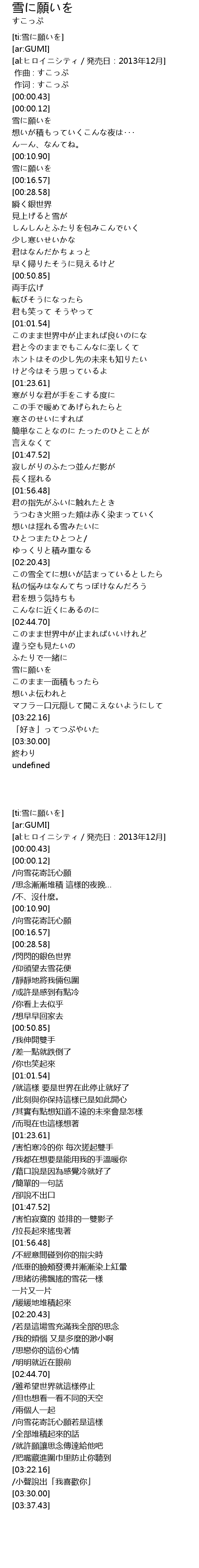 雪に願いを Xue Yuan Lyrics Follow Lyrics